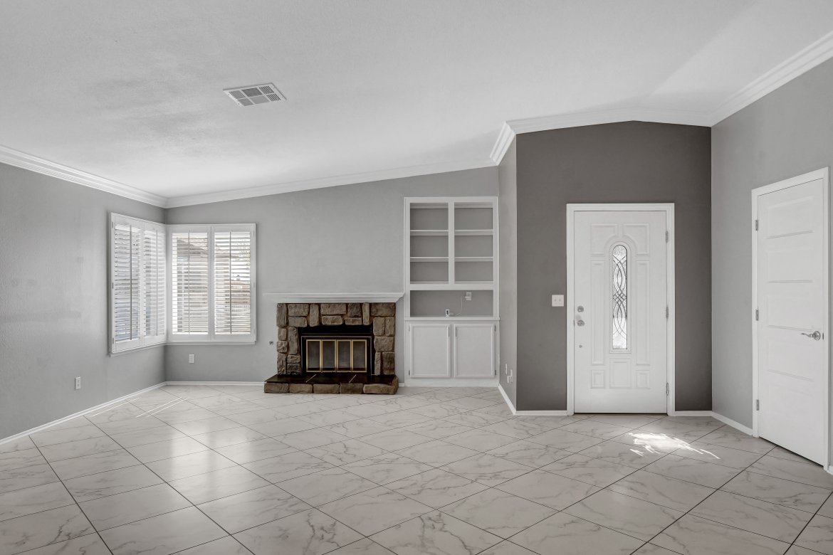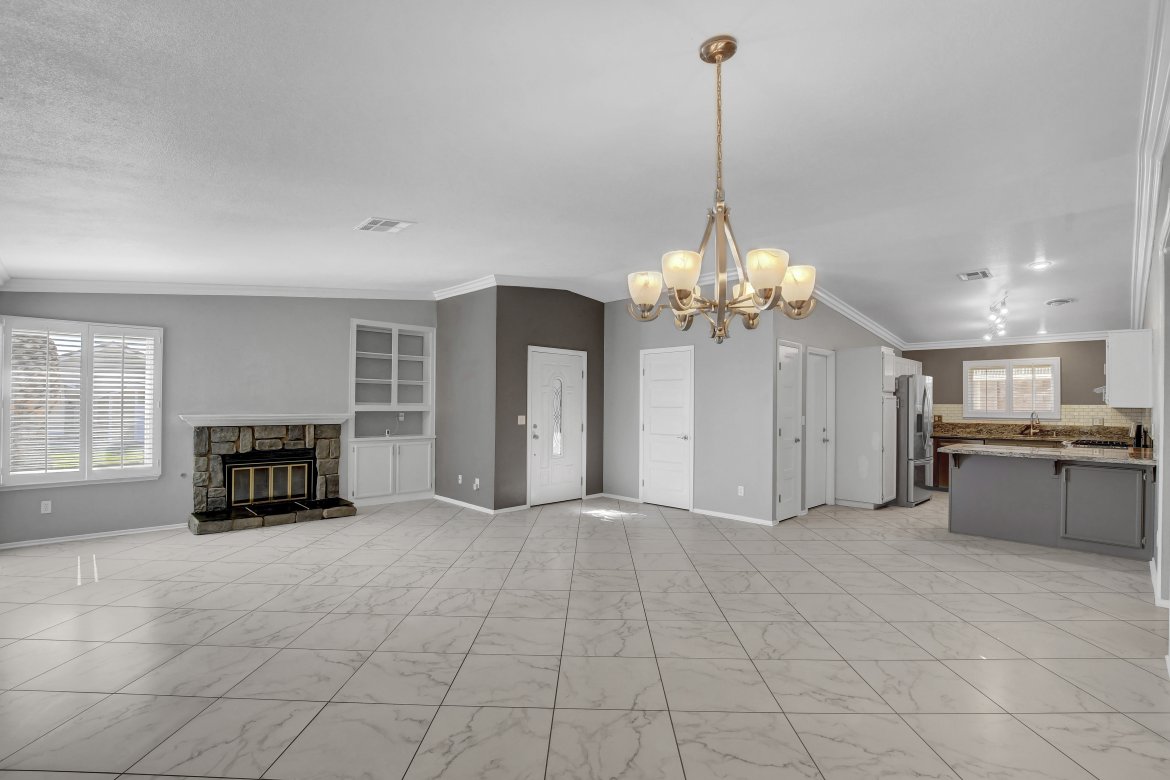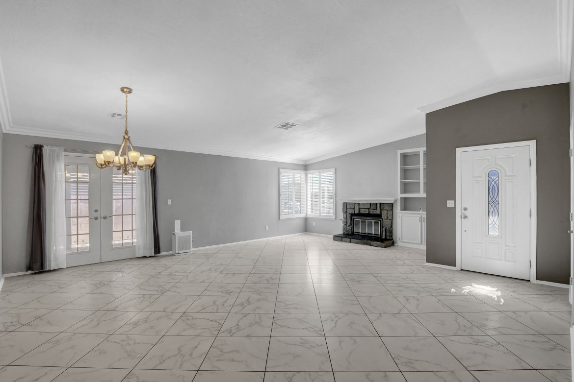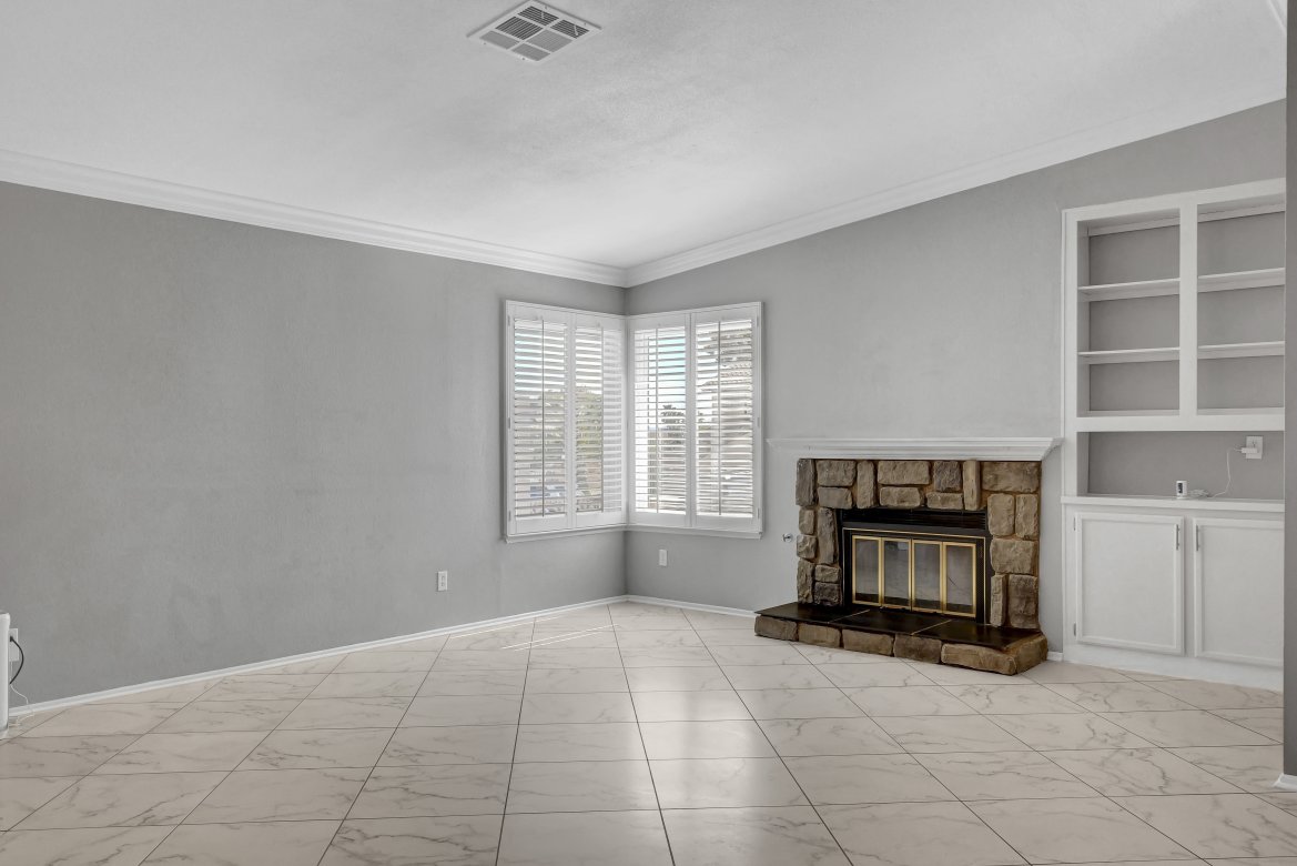 Honey, Stop the car! This absolutely beautiful, low-maintenance single-story home features an open floor plan an impressive 64′ covered RV/boat parking. From the moment you step inside this Villa Del Prado home, you’ll be captivated by the freshly painted interior, spacious layout, vaulted ceilings, cozy fireplace, updated flooring, and modern baseboards. The kitchen offers granite countertops, a breakfast bar, and newer appliances—perfect for everyday living. This move-in ready home includes 3 spacious bedrooms and 2 remodeled bathrooms, along with a large sunroom ideal for gatherings or relaxing. Additional highlights include 7 Anderson windows, plantation shutters, and an attached two-car garage with a new garage door, epoxy flooring, new washer and dryer, and a mini-split system. Step outside to enjoy the private backyard featuring a covered patio and relaxing Jacuzzi—perfect for entertaining or unwinding at the end of the day. Come see why this home checks your boxes!
