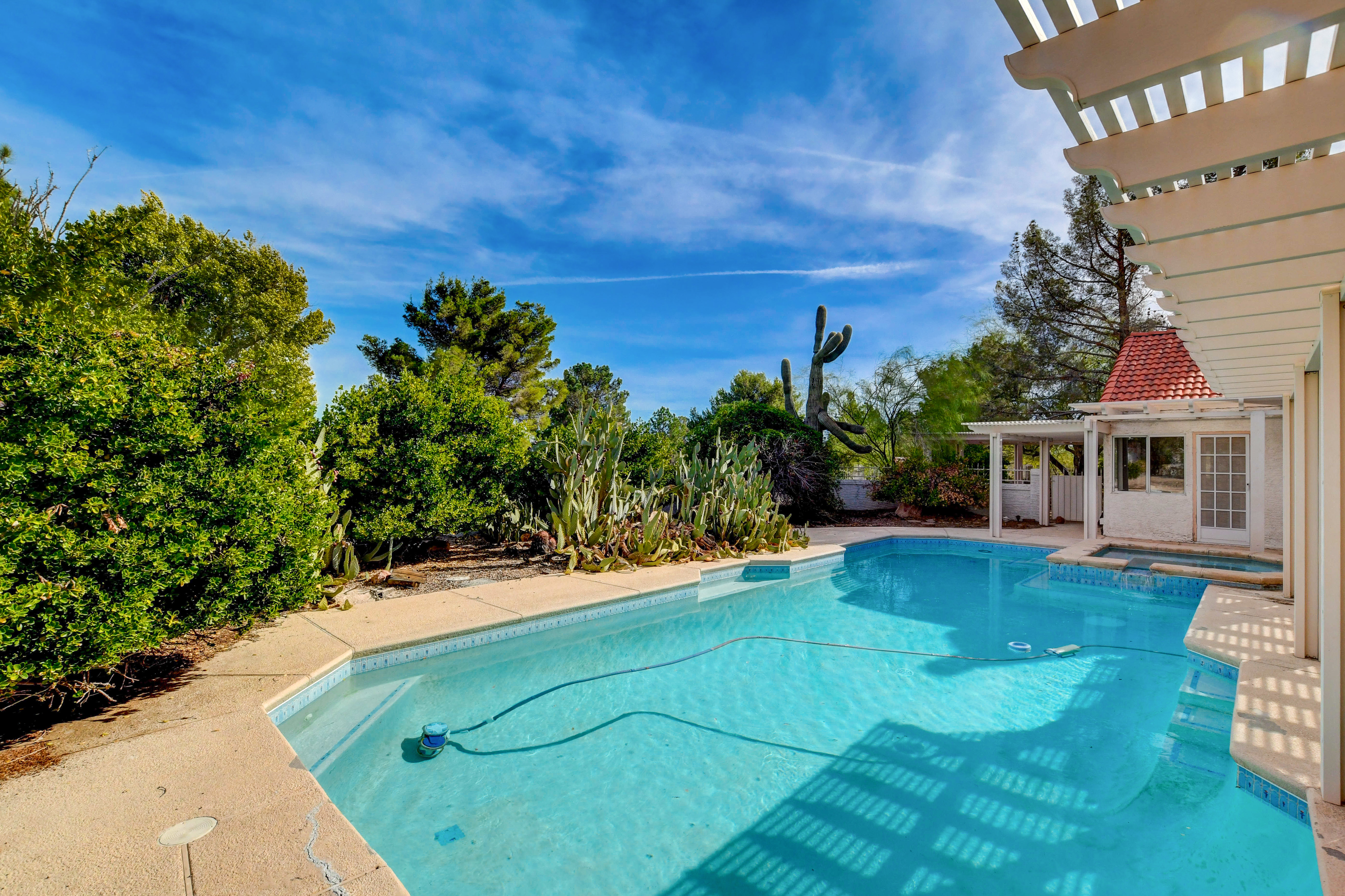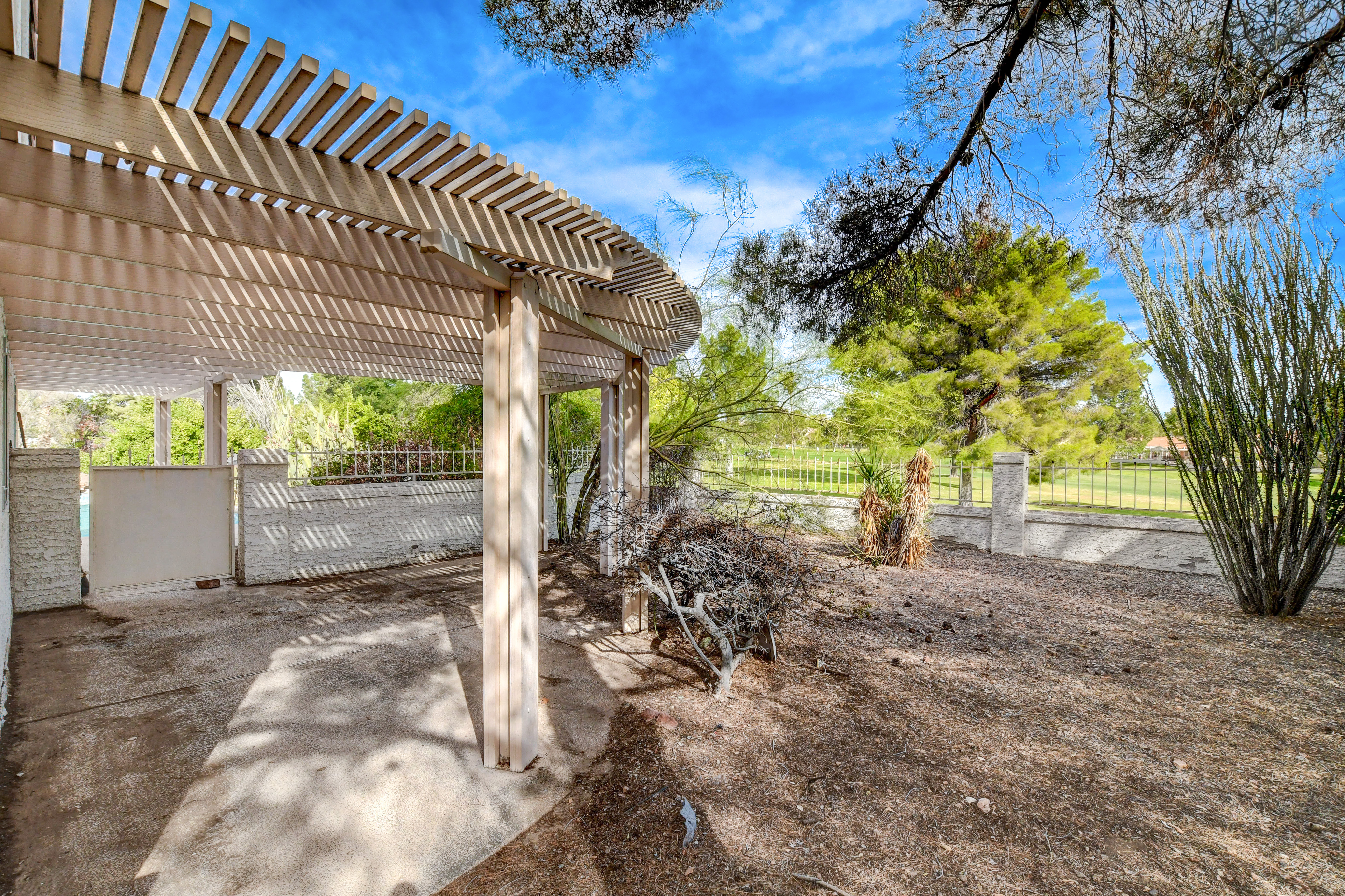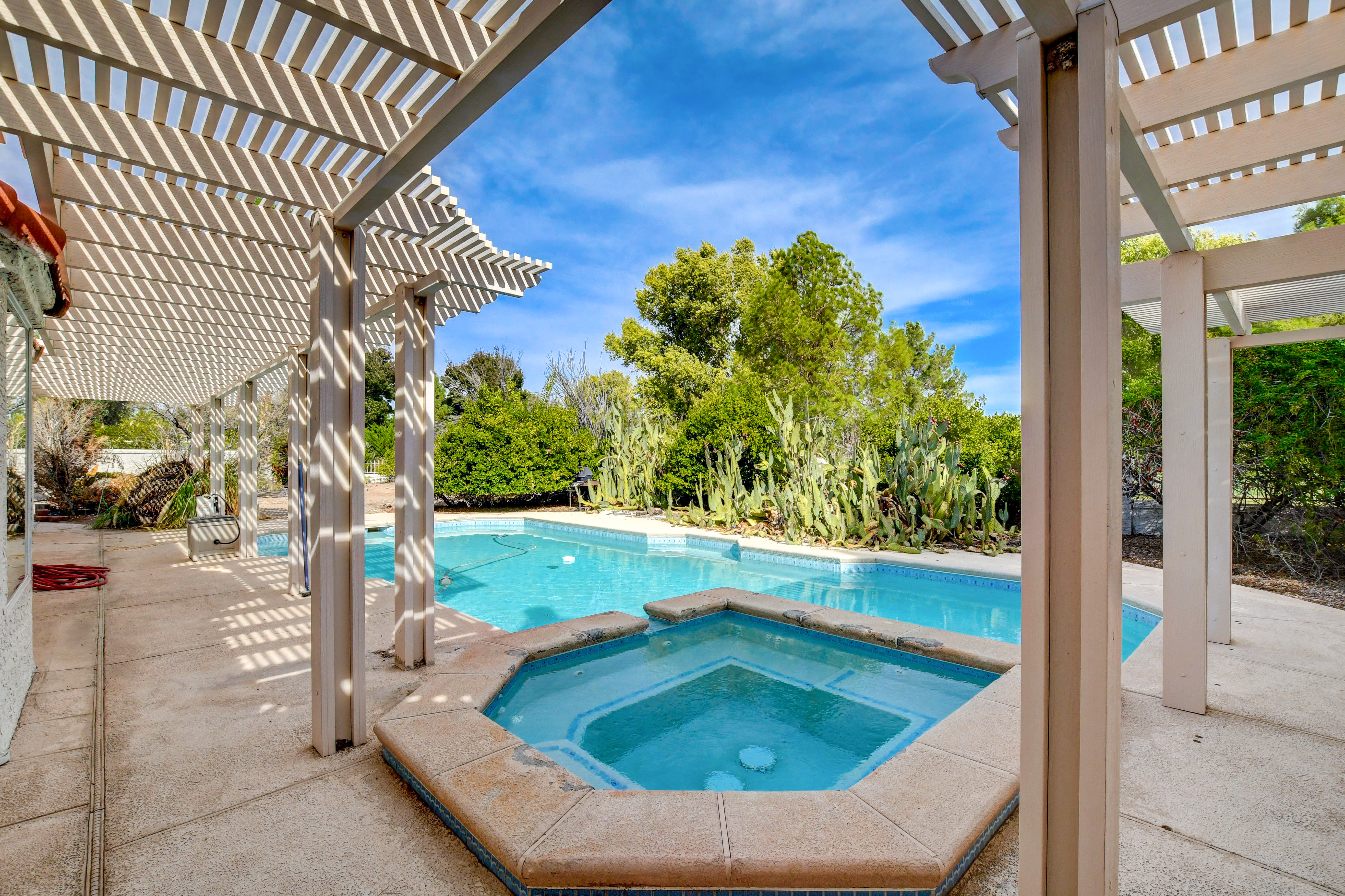 Welcome to this 4-bedroom, 3-bath home located on a quiet cul-de-sac overlooking the 16th hole of the Boulder City Municipal Golf Course. Nestled on a large 0.40-acre lot, this property offers ample space. Enjoy a 3-car garage plus RV/boat parking, perfect for all your vehicles and toys. Inside, you’ll find a sunken living room, formal dining area, and a cozy family room with a fireplace – ideal for both entertaining and everyday living. The multi-purpose room has the ability to serve different functions depending on your needs – home office, game room, or independent area. The massive primary suite is a true retreat, featuring its own fireplace, a huge walk-in closet, dual sinks, a soaking tub, and a separate shower. Step outside to a large backyard with a pool and spa, plus expansive outdoor areas offering endless possibilities. This home combines plenty of elbow room and a location that is sure to impress.