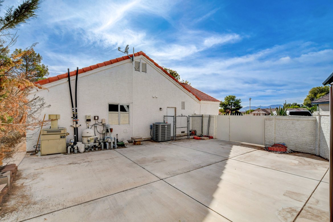 Welcome to this 4-bedroom, 3-bath home located on a quiet cul-de-sac overlooking the 16th hole of the Boulder City Municipal Golf Course. Nestled on a large 0.40-acre lot, this property offers ample space. Enjoy a 3-car garage plus RV/boat parking, perfect for all your vehicles and toys. Inside, you’ll find a sunken living room, formal dining area, and a cozy family room with a fireplace – ideal for both entertaining and everyday living. The multi-purpose room has the ability to serve different functions depending on your needs – home office, game room, or independent area. The massive primary suite is a true retreat, featuring its own fireplace, a huge walk-in closet, dual sinks, a soaking tub, and a separate shower. Step outside to a large backyard with a pool and spa, plus expansive outdoor areas offering endless possibilities. This home combines plenty of elbow room and a location that is sure to impress.